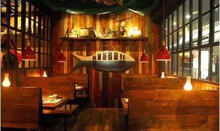 探魚(yú)店內(nèi)的所有軟裝擺飾走的都是“懷舊”風(fēng),無(wú)論是燈光、擺件,還是樓梯、桌椅,都將文藝和懷舊嵌在了骨頭縫里,燈光是迷離的,菜單是卡通的,壁畫(huà)是涂鴉的,陳設(shè)是懷舊的,餐具是萌萌噠,就連菜品都由內(nèi)而外散發(fā)著復(fù)古風(fēng)。