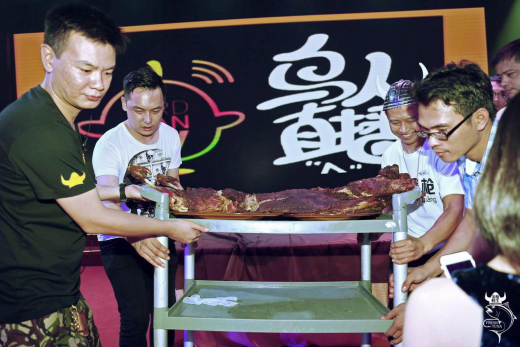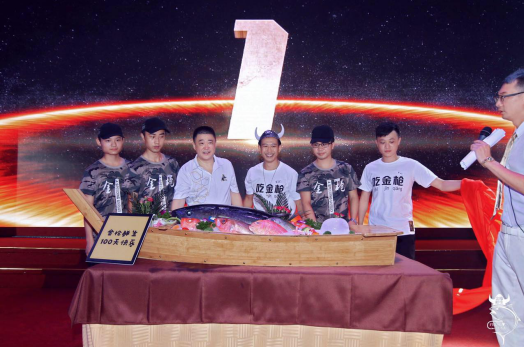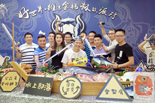 在派對一開始,就看到工作人員推著大目金槍魚進(jìn)入主場進(jìn)行亮相,隨后舉行了金槍鮮生百日宴倒計時,現(xiàn)場氣氛十分濃重!當(dāng)派對進(jìn)行到三分之一時,金槍鮮生展現(xiàn)本次派對的首秀—開魚秀。