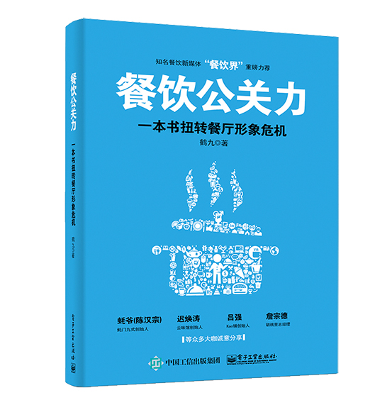 于是,鶴九又將自己在品牌公關(guān)策劃與傳播的經(jīng)驗與知識進行了系統(tǒng)梳理,并結(jié)合餐飲行業(yè)過往發(fā)生的眾多案例,撰寫了《餐飲公關(guān)力》一書。他希望通過概念解讀、案例剖析、方法論總結(jié),從勢、術(shù)、器三個層面,直擊餐飲公共關(guān)系命脈,幫助餐飲企業(yè)全方位修煉餐飲公關(guān)力,徹底扭轉(zhuǎn)餐廳形象危機。