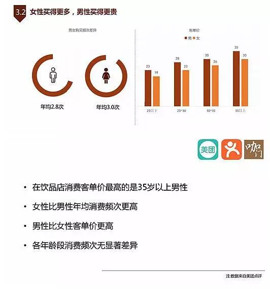 1)男性年均購(gòu)買(mǎi)頻次大概2.8次,女性3.0次;